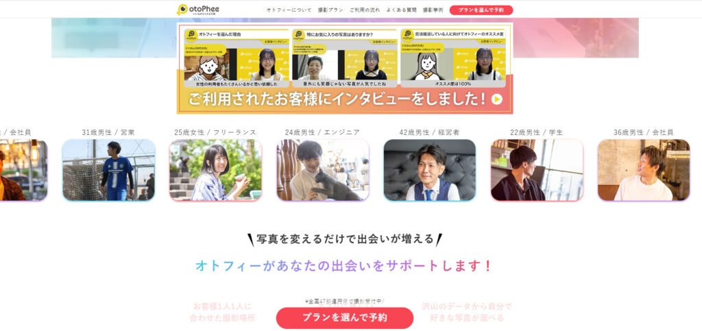 こうした悩みを解決するために誕生したのが、マッチングアプリ専門の写真撮影サービス「オトフィー」です。